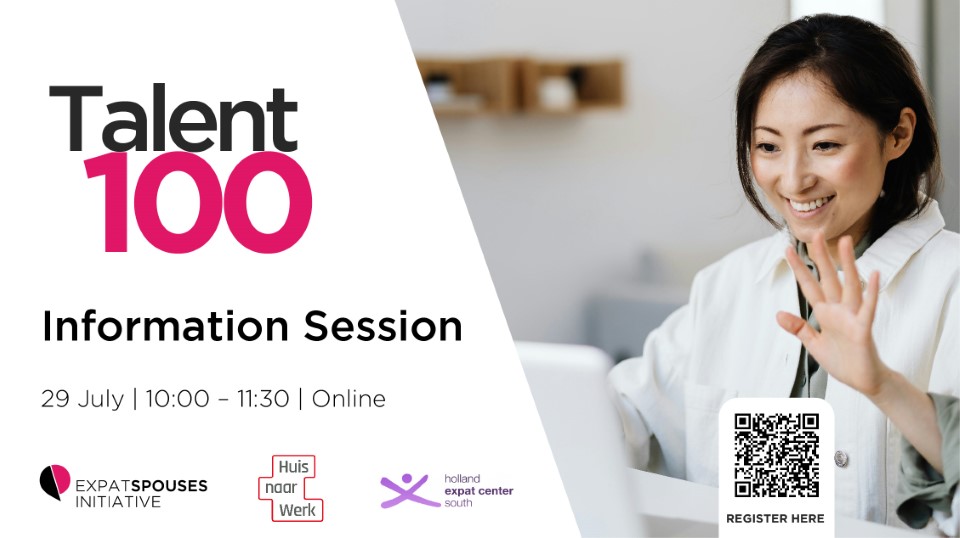Talent100 is a collaboration between Huis Naar Werk, the Holland Expat Center South, and the Expat Spouses Initiative.